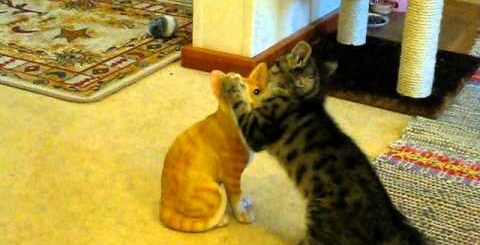 お次の茶トラちゃんも、手だけを狙ってジャレまくり。