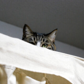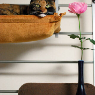 ねこねーさんちの家の中は、ごちゃごちゃしていて隠れどころがいっぱいなので、にゃんこのみなさんは、よく室内で行方不明になります。 たとえば、ルビ子さん。呼べど探せど見つからないときは、こんなところに… あ、いた! ルビちゃん、ごはんだから降りてきてよー! 寝室にある簡易式クローゼットの天面の布が、ちょ...